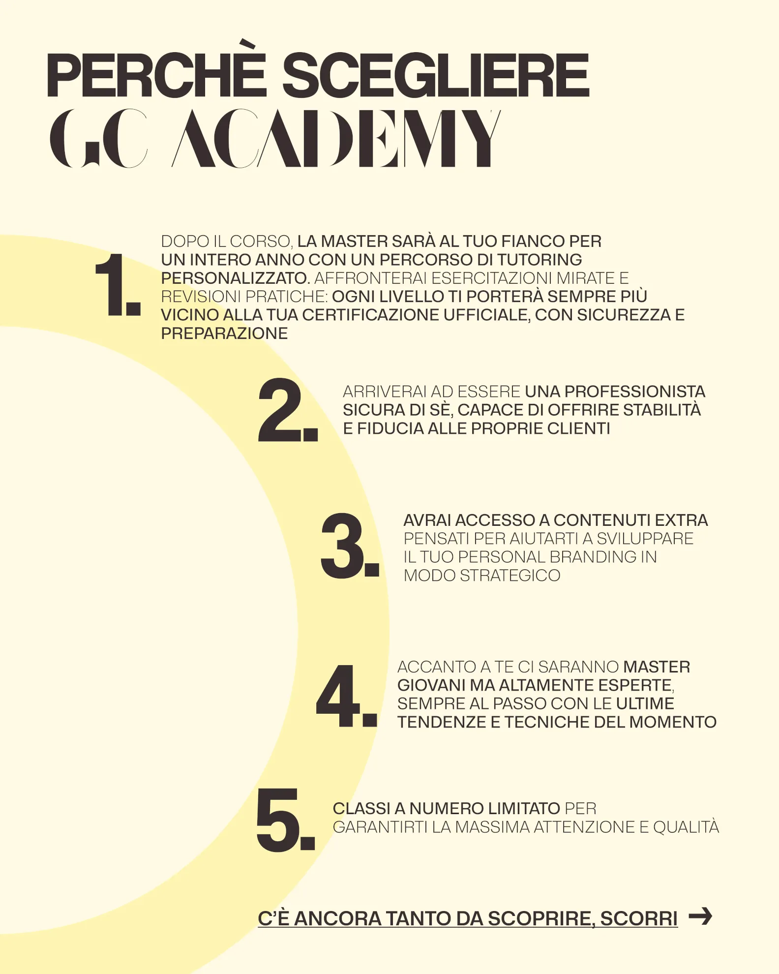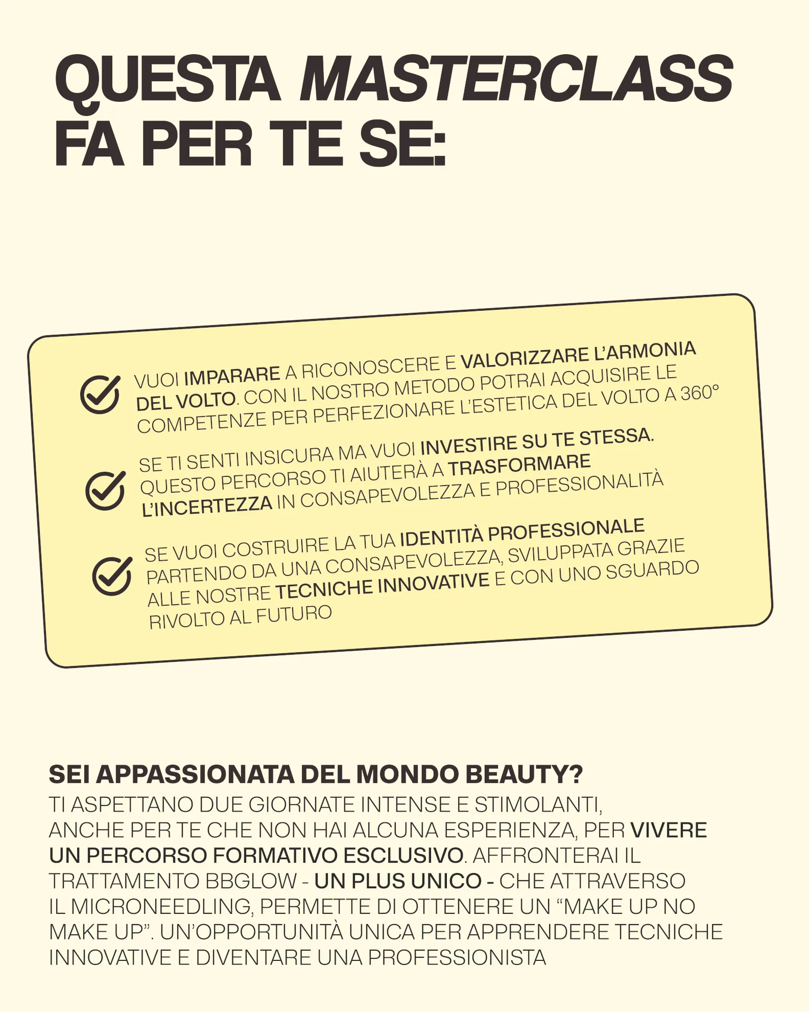 La Master entrerà nel merito di ciascuno dei punti supervisionando le studentesse durante la prova pratica, ricevendo dei feedback personalizzati ed individuali.